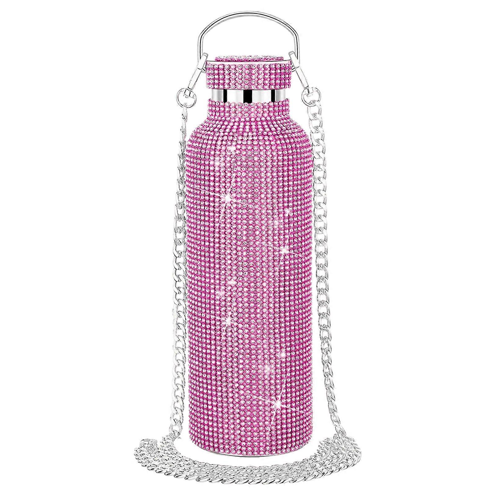 750ml Diamond Thermos Bottle with Chain, Rhinestone Vacuum Cup, Glitter Water Bottle Girl Women Gift (Pink)