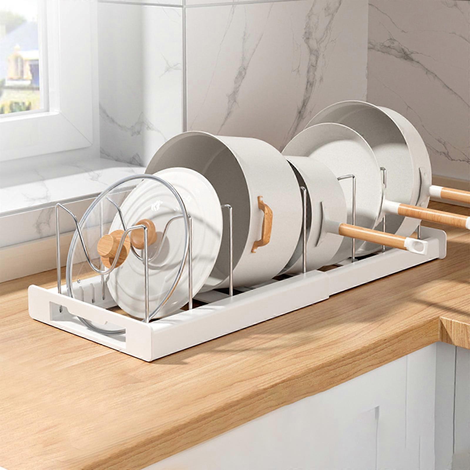 Daiosportswear Pot Rack Organizer, Expandable Cabinet Storage with Adjustable Compartments for Pots, Lids, Cookware, Baking & Frying Pans