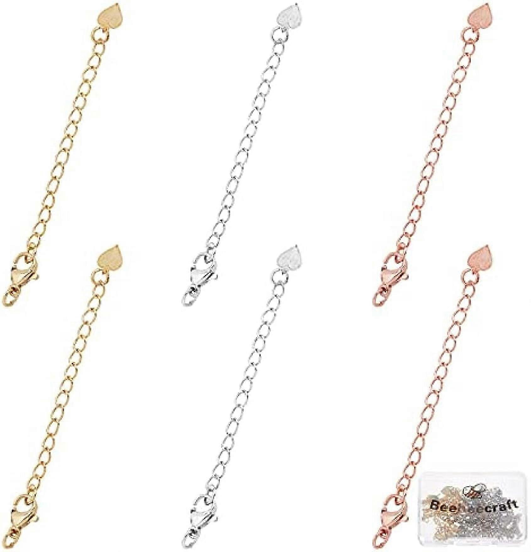 18Pcs 3 Colors Gold Plated Necklace Extenders, Compatible with Golden White Gold Rose Gold, Heart Charms & Lobster Clasps for Jewelry Making