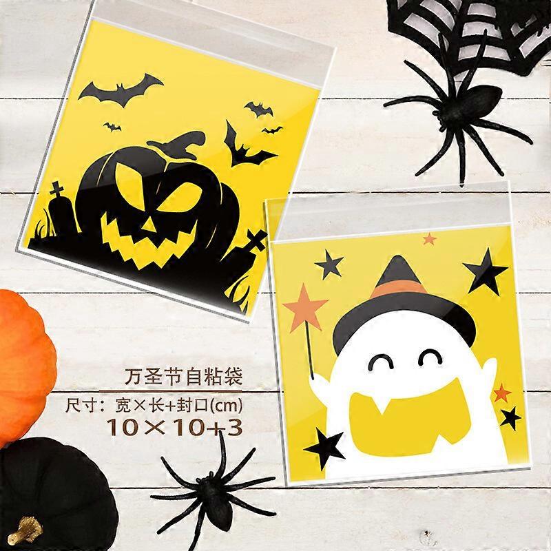 100pcs Self Adhesive Halloween Plastic Cookie Candy Gift Packaging Treat Bags