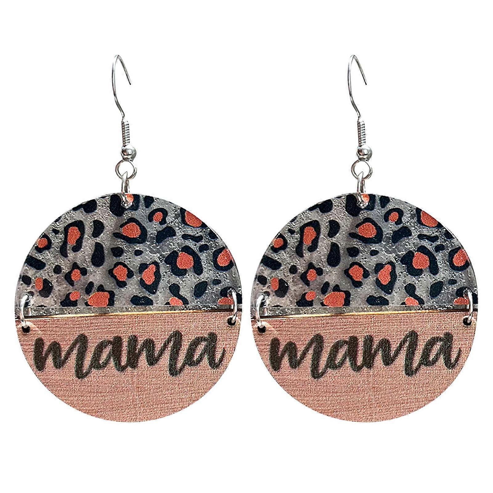 Hwuxmo Mother's Day Acrylic Earrings Sunflower Bear Mother Leopard Transparent Wood Round Earrings Clearance D