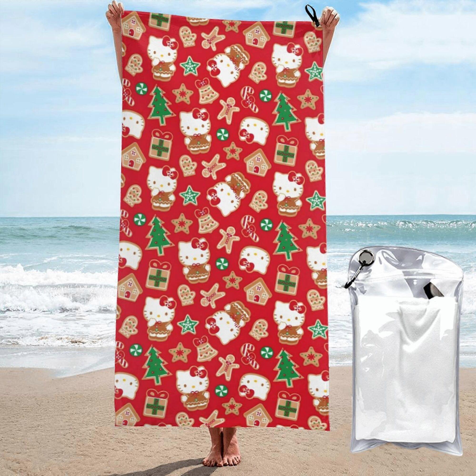 Hello Kitty Christmas Microfiber Bath Towel - Soft, Quick Dry, Portable for Travel, Swimming, Sports, Beach (Vertical 31.5" x 63")