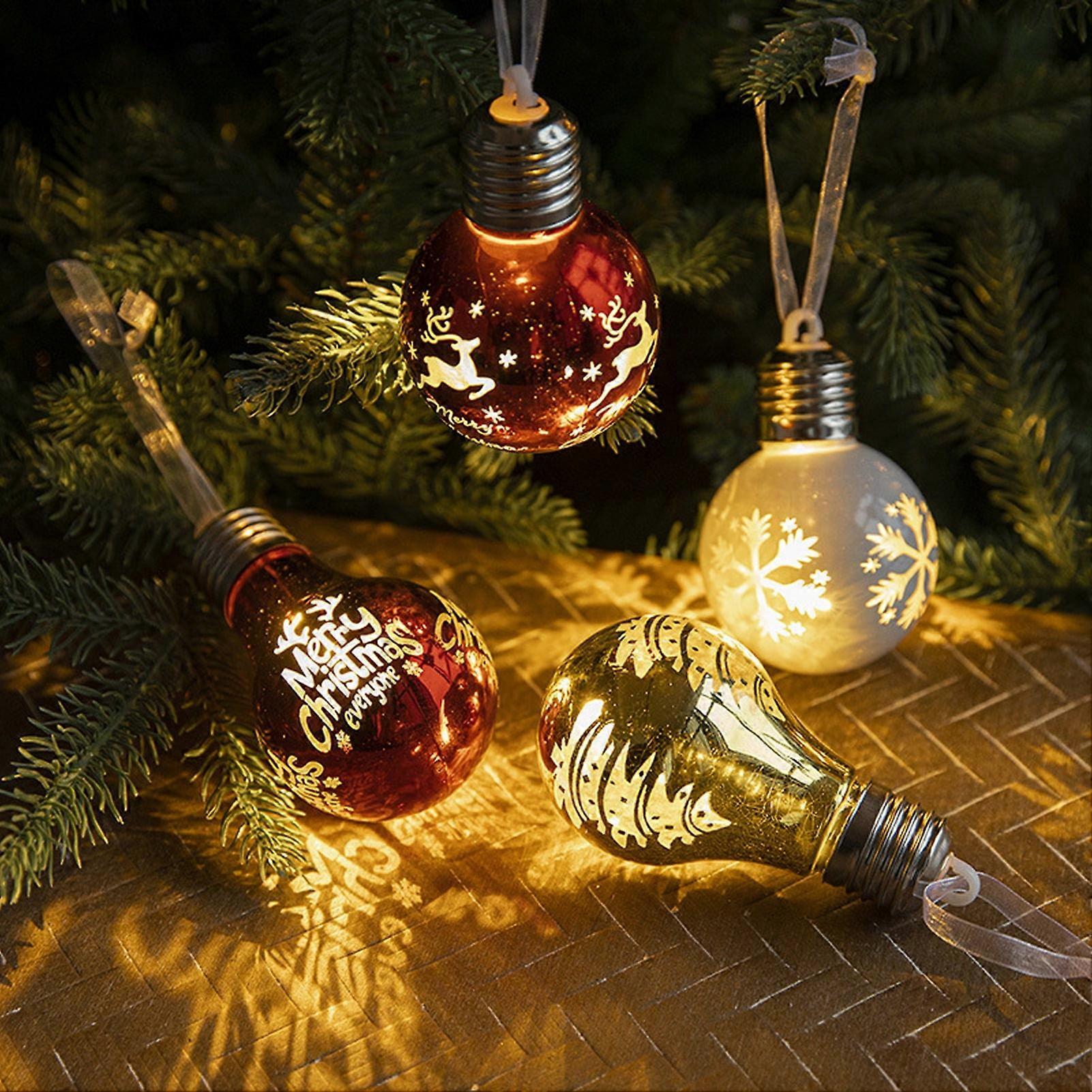 SUSUchens Christmas Ball Ornament Luminous Bulb Shape Festive Christmas Tree Pendant for Home Holiday Decorations Style E