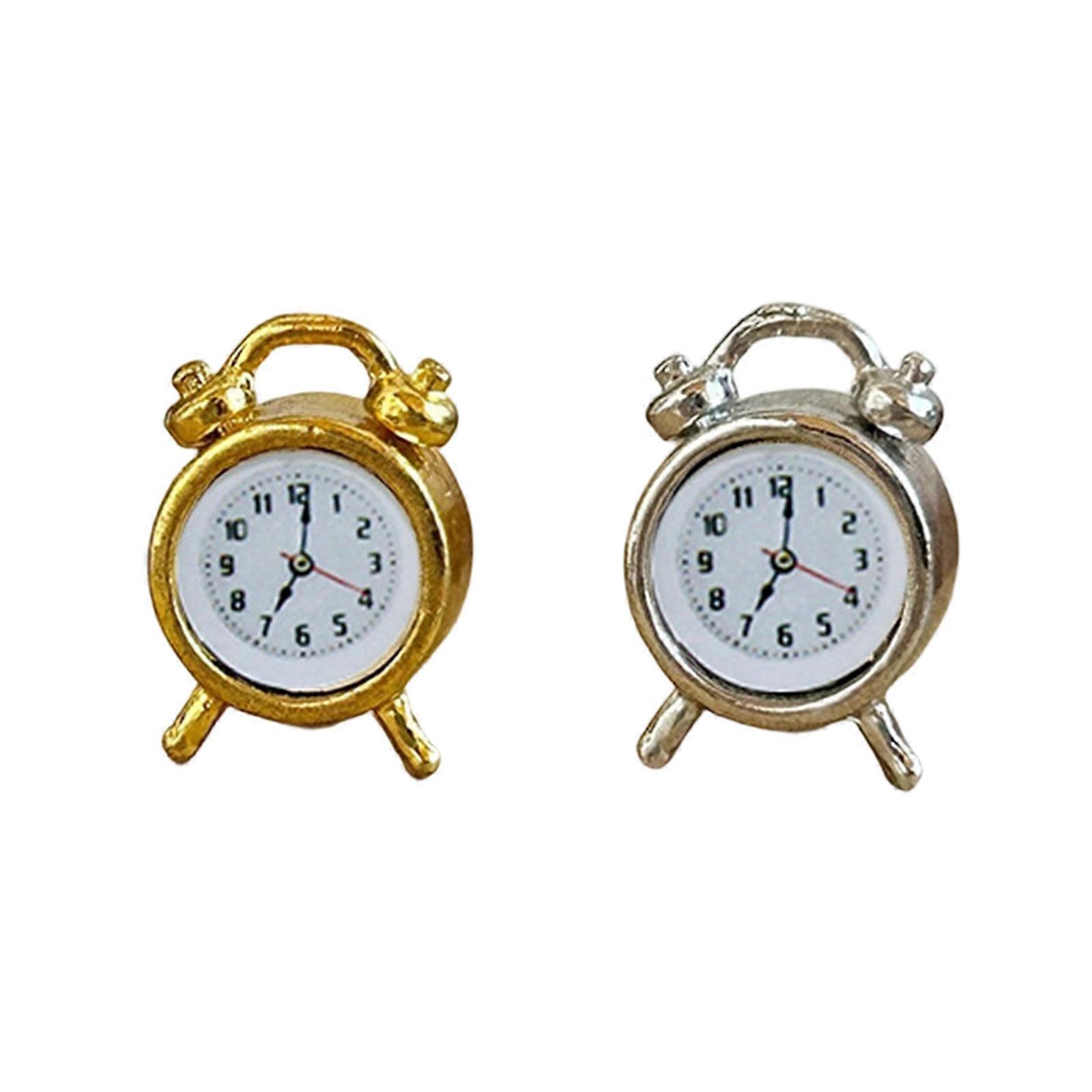 2PCS Miniature Clocks Alloy Alarm Clocks Decorative Furniture For Doll House Scene Decors Office Desk Shelf Ornament Multicolor