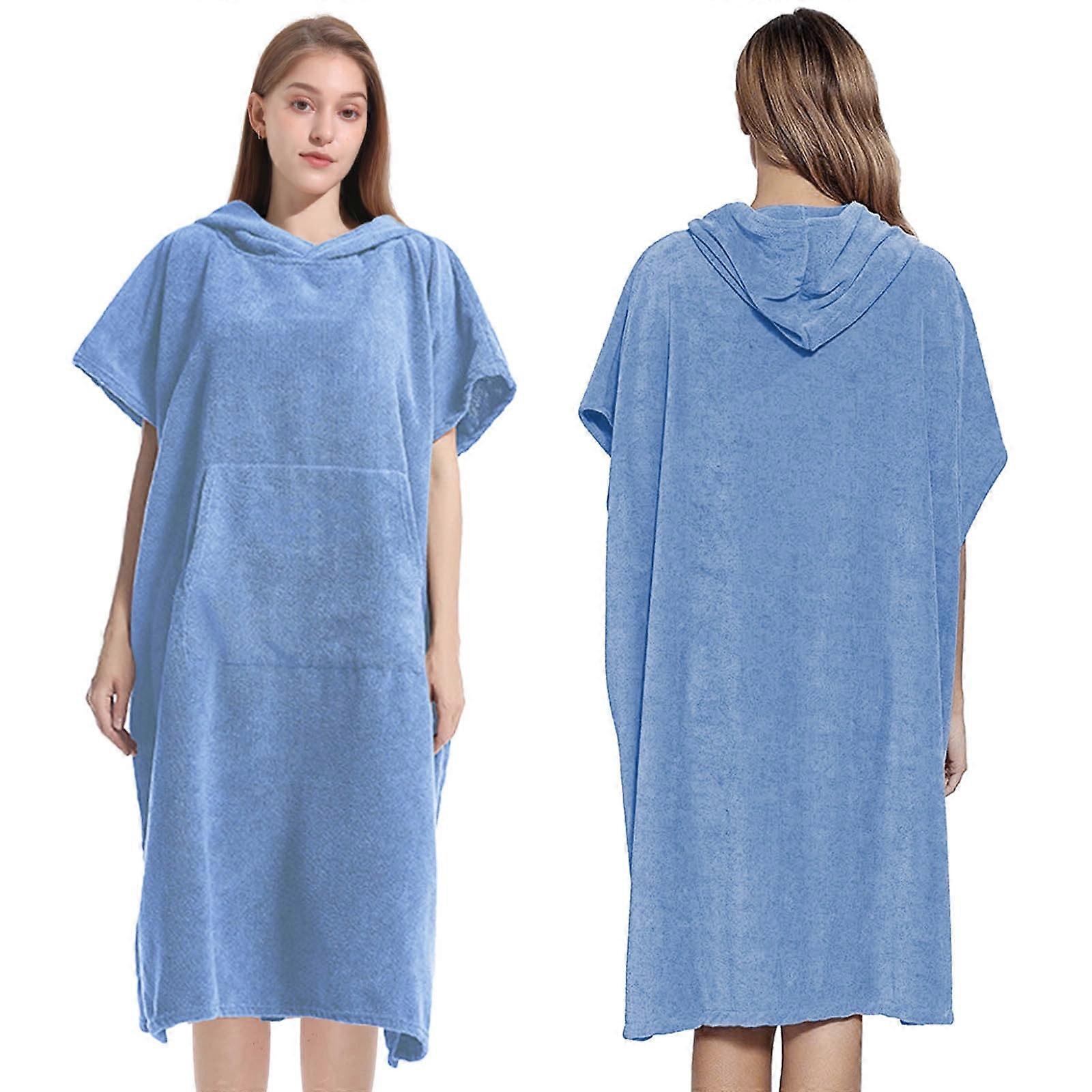 EQWLJWE Unisex Surf Beach Poncho,Solid Color Wetsuit Changing Towel Bath Robe with Hood for Surfing Swimming Bathing Gift Blue