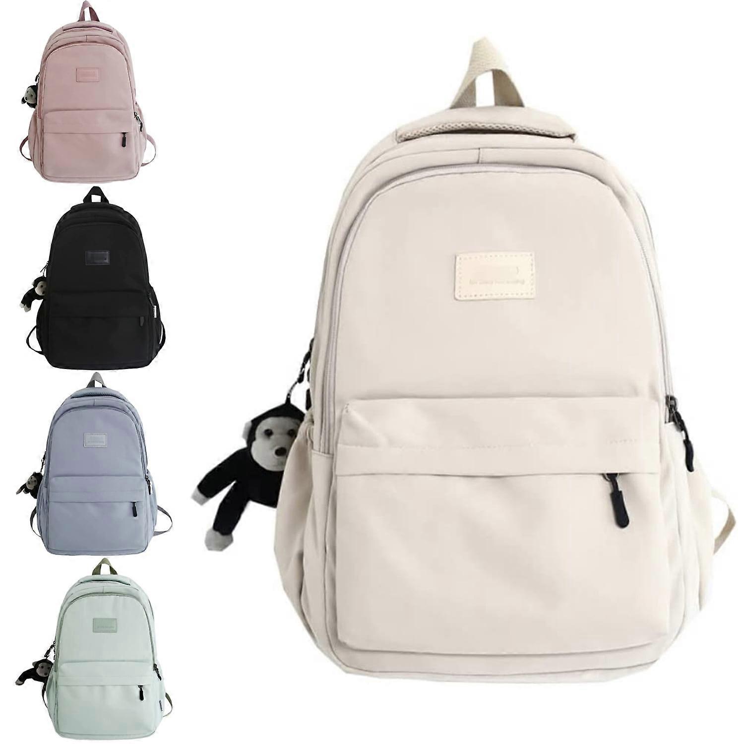 Simple Casual Backpack Multilayer Solid Color Travel Rucksack Multi-Pocket with Zipper Waterproof for Hiking Travel Camping(Beige)