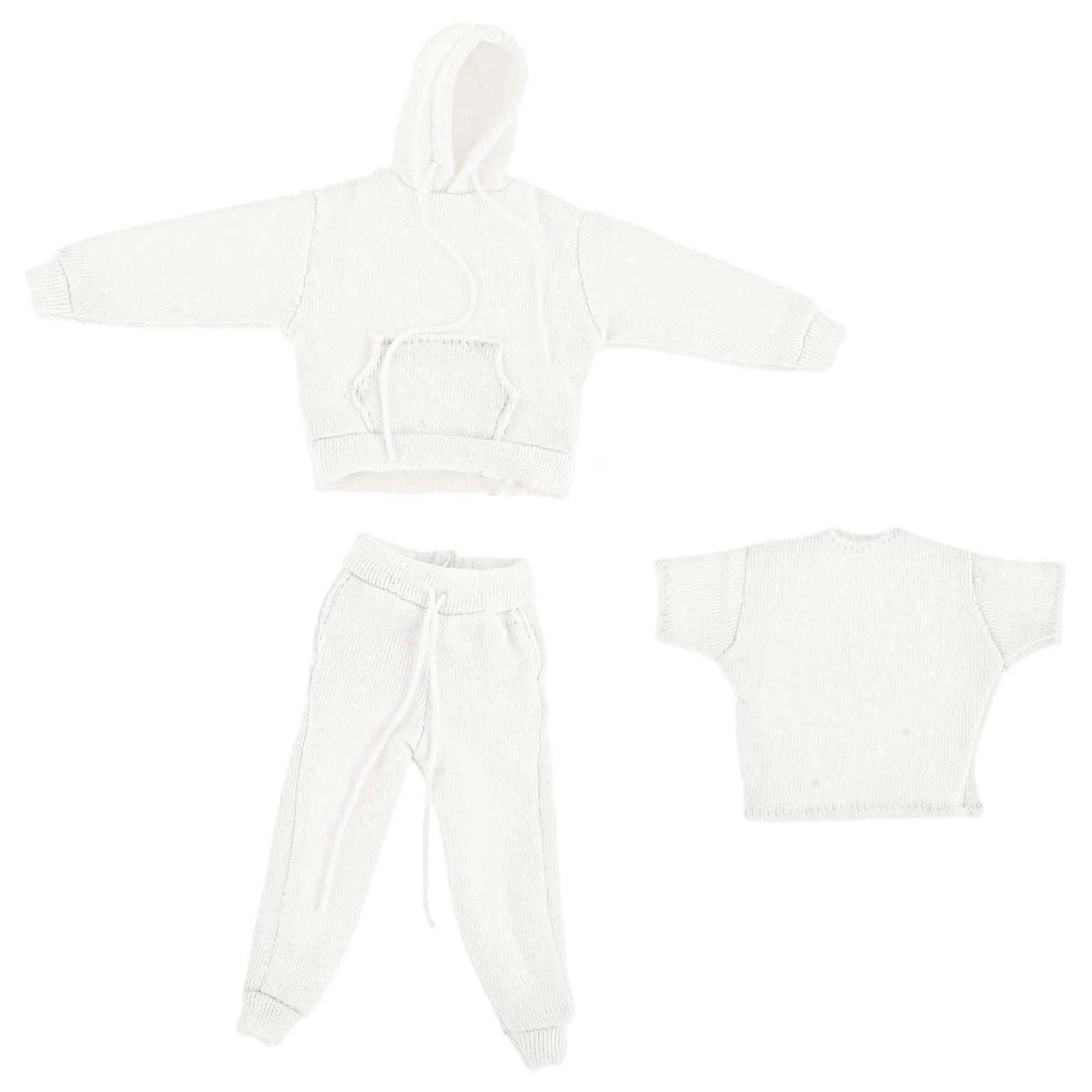 Collectible 1/12 Action Figure Garment Hoodie SweatPants Top Tshirt Set for Soldier Figure Kids Roleplay Game Accessory White