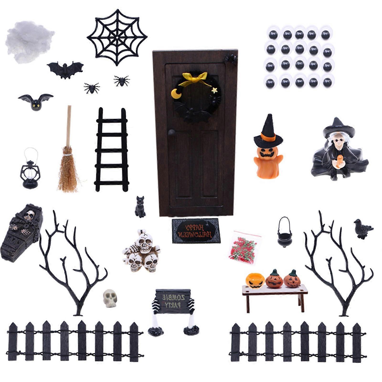 Miniature Dollhouses Halloween Decors Pumpkin And Elf Door Set For Holiday Tabletop Scene Creation Multicolor