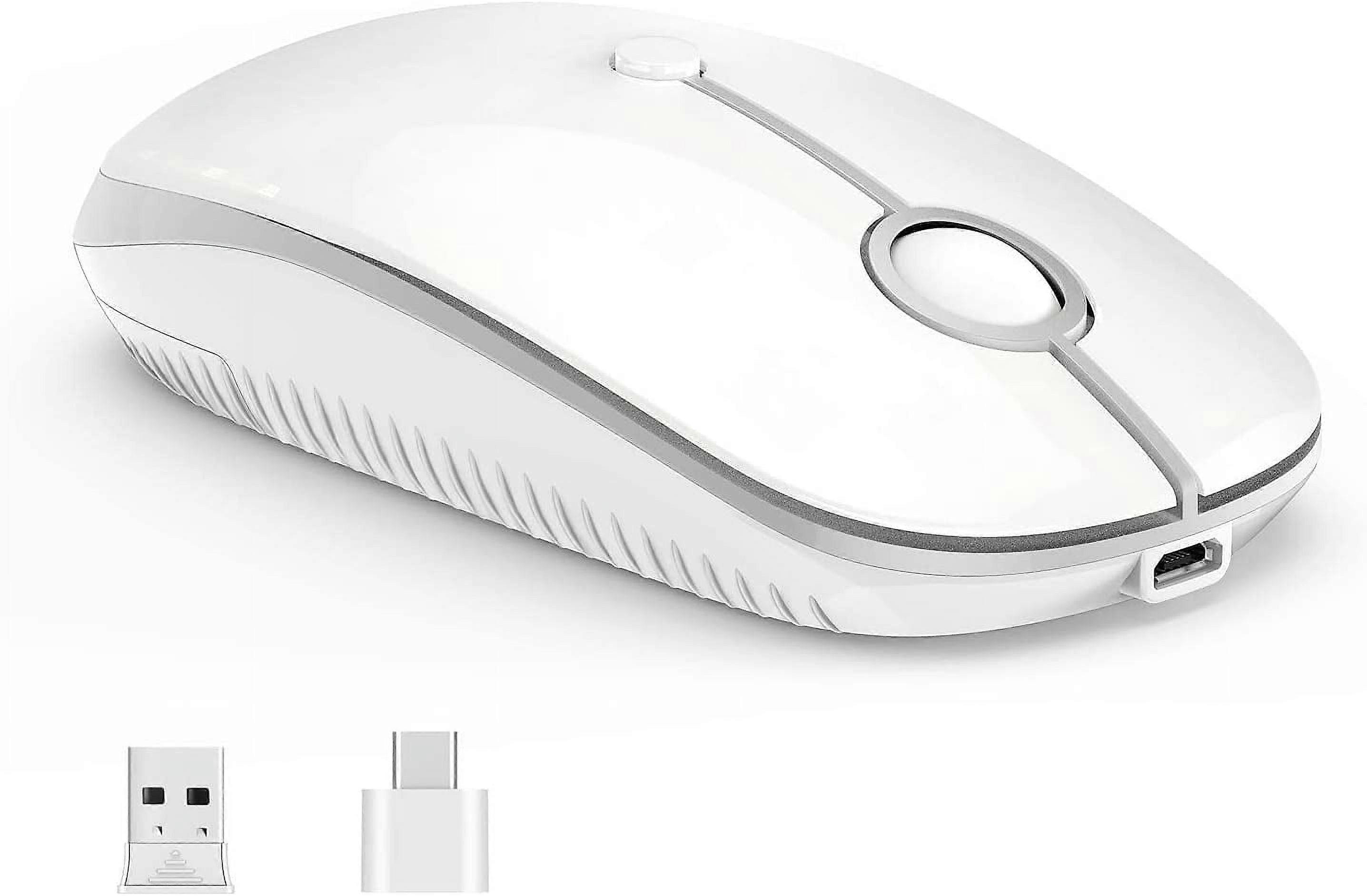 Type C Wireless Mouse, Dual Mode 2.4G Wireless Mouse USB C Cordless Mice with Nano USB and Type C Receiver