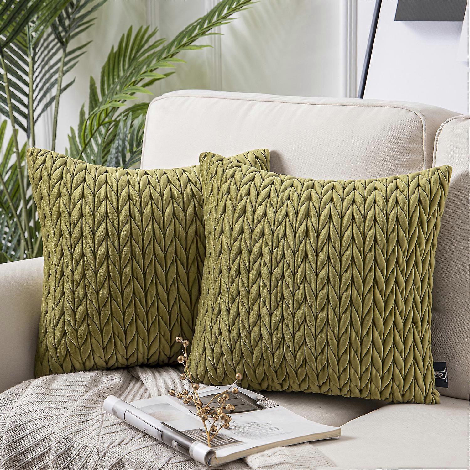 Holiday Deal Selection Phantoscope Quilted Velvet Braid Textured Pleated Decorative Throw Pillow Cover for Bed and Couch, 20" X 20", Green, 2 Pack