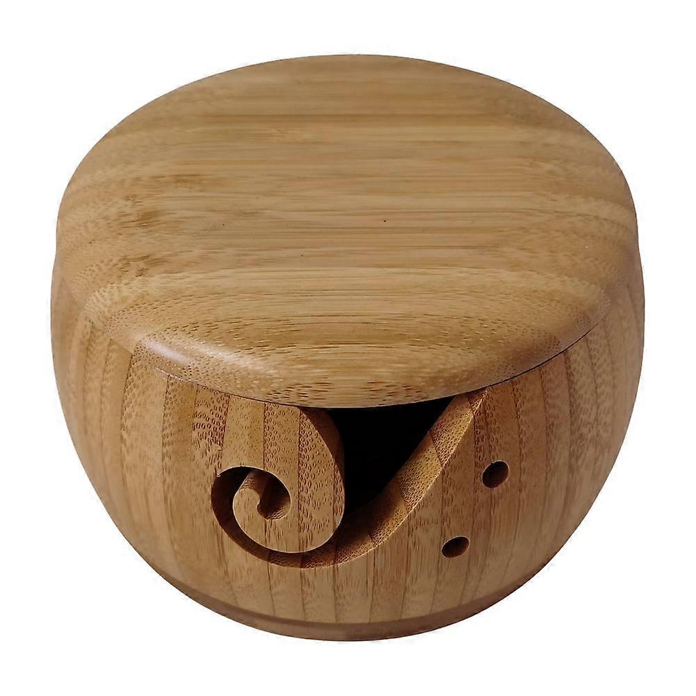 Wooden Yarn Bowl With Lid Handmade Wool Storage Bowl For Knitting Needle Organizer Holder Crochet Sewing Supplies