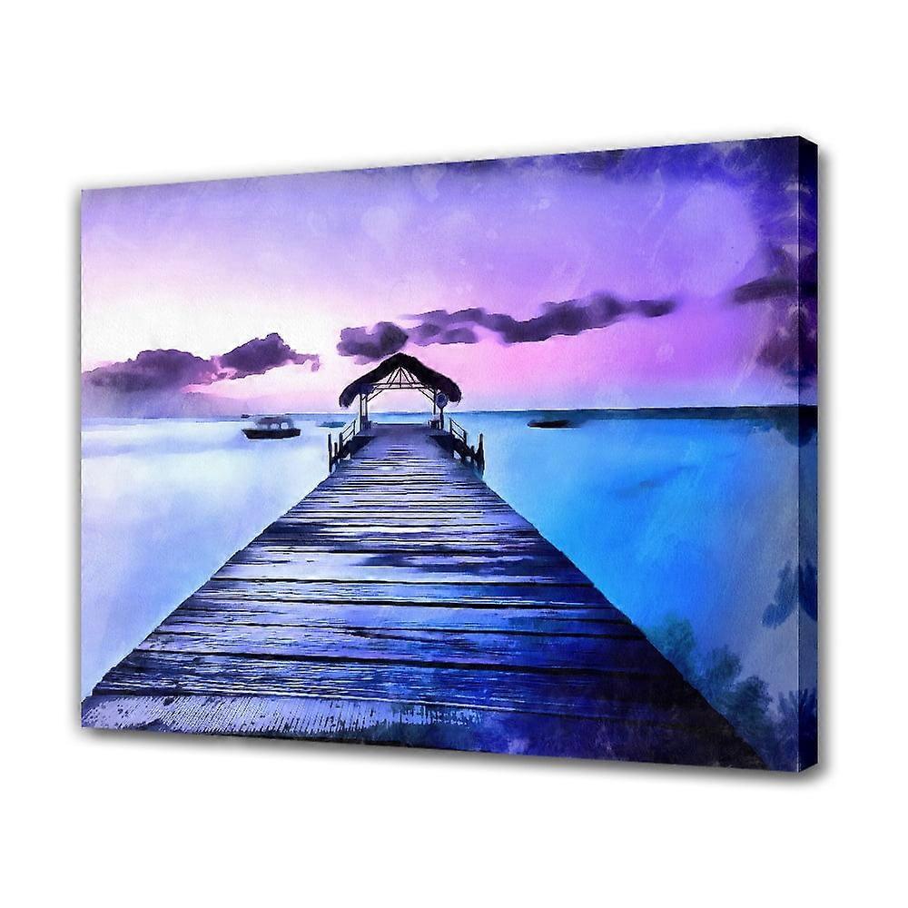 Purple Bridge Sunset Beach Canvas Print, Modern Wall Art Poster Decor, Compatible with Living Room & Bedroom, 12x18inch
