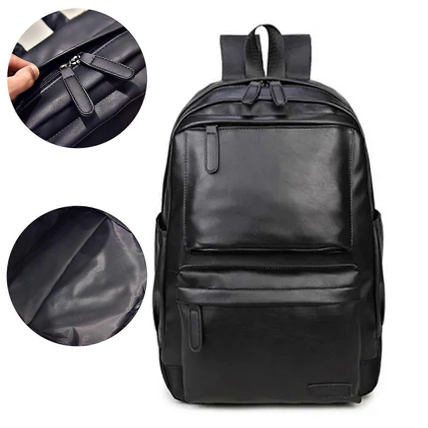 Retro Casual PU Leather Backpack Large Capacity Travel Bag Waterproof Multifunctional Travel Bag(Black)