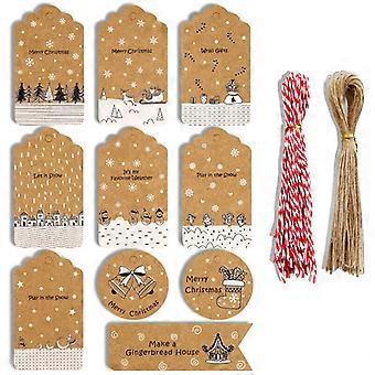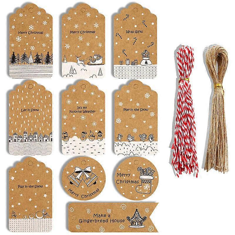 2022 NEW Christmas Kraft Paper Gift Tags Scallop Label Luggage + Strings A x100