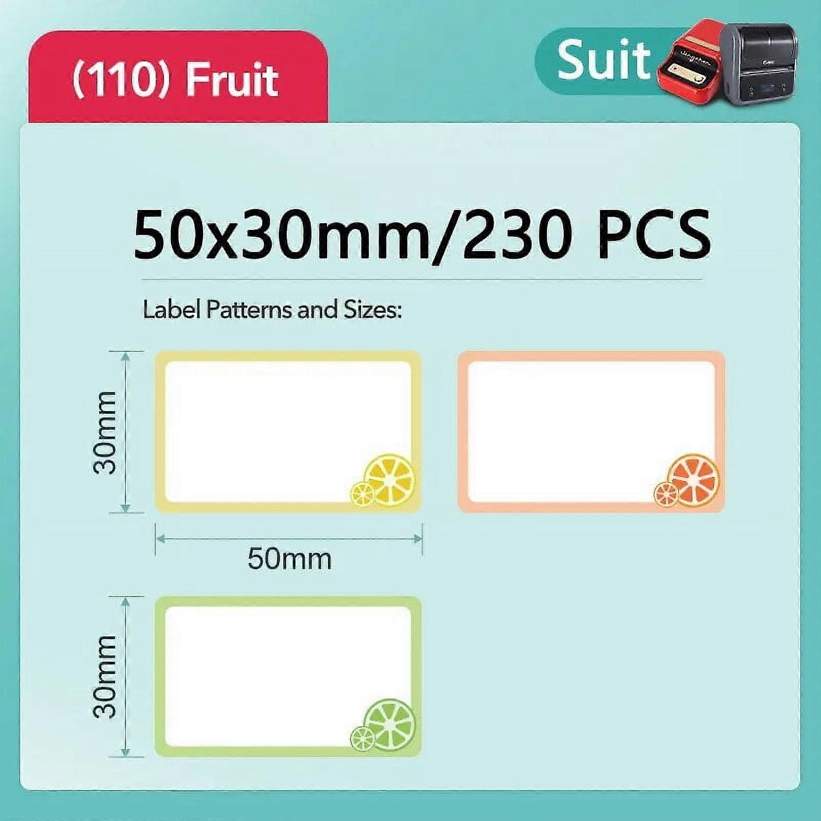 Niimbot Cartoon Pattern Thermal Label Sticker Paper Smart Portable Label Waterproof Stickers Fast Printing For B1/B21/B203/B3S 110-5030-Fruit
