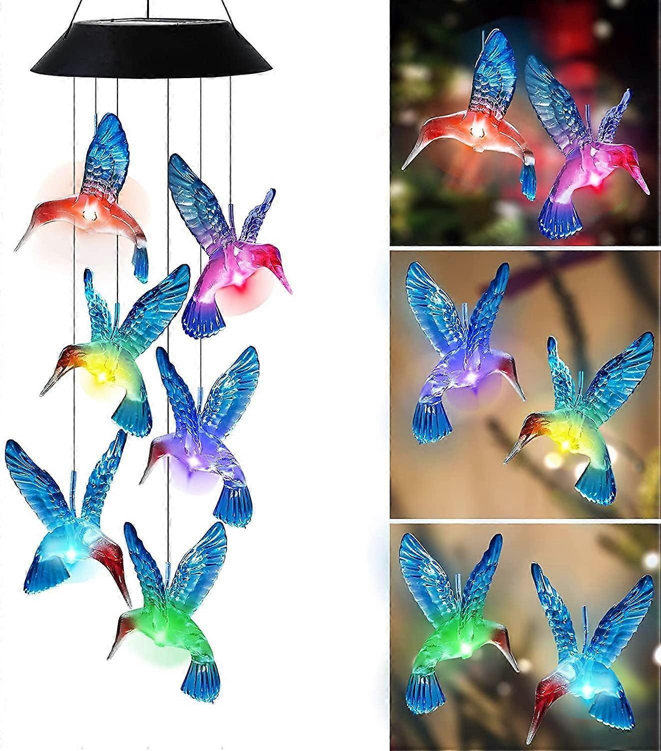 Giyblacko Garden Lamps Solar Blue Hummingbird Wind Chime Light LED Hummingbird Garden Solar Wind Chime Light Light Garden Light