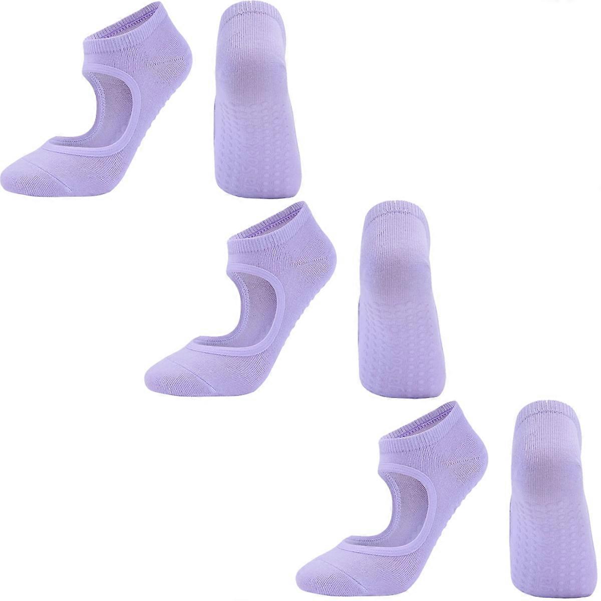 3 Pairs Professional Women Yoga Socks Silicone Anti-slip Ballet Pilates Socks Women Backless Breathable Bandage Dance Sports Socks (35-42CM,Violet)