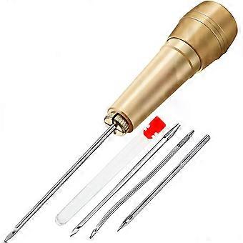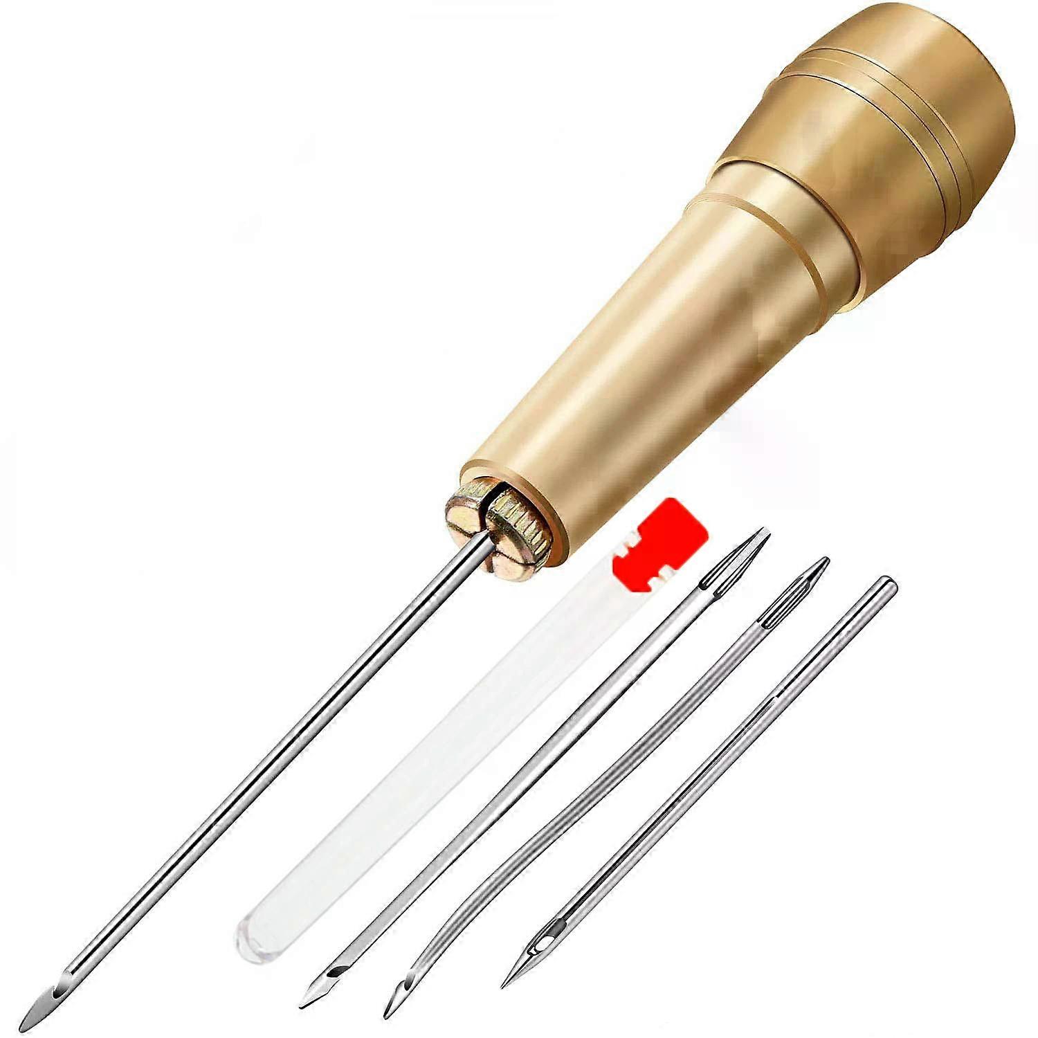 9Pcs Leather Sewing Kit, Copper Handle Leather Sewing Awl, Needle Set, Suitable for Repairing Leather Canvas Tent Shoes