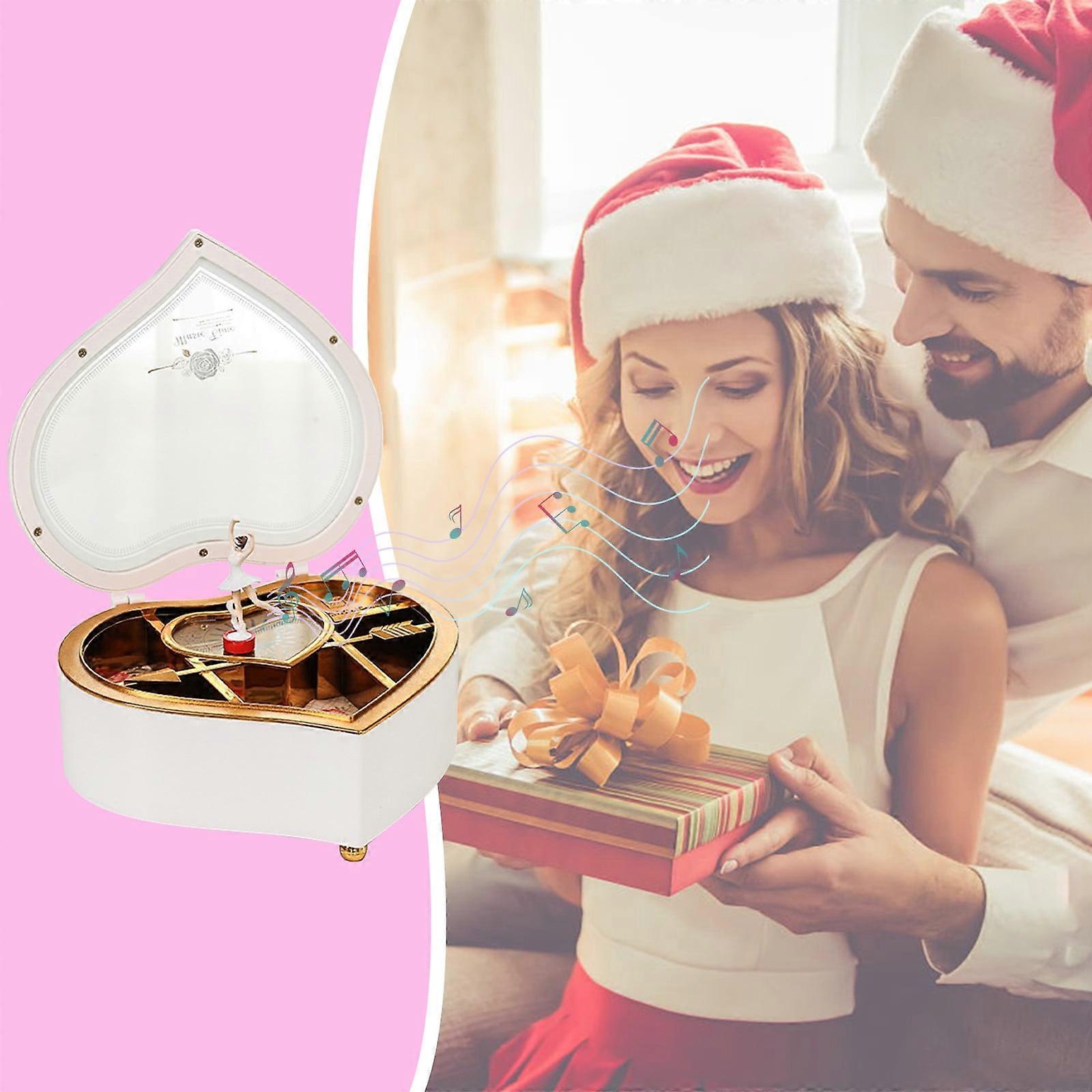 Yakbaofuo Ornaments Peach Heart Music Jewelry Box Rotating Girl Music Box Creative Jewelry Box Gift Christmas Halloween Desktop Decorations