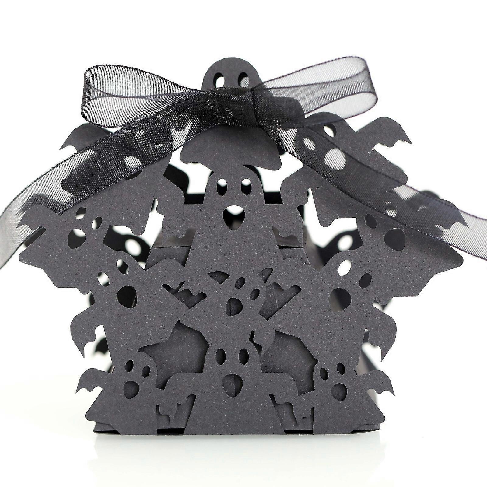 50-100X NEW Black Halloween Bat Laser Cut Party Favour Candy Gift Boxes Ribbons