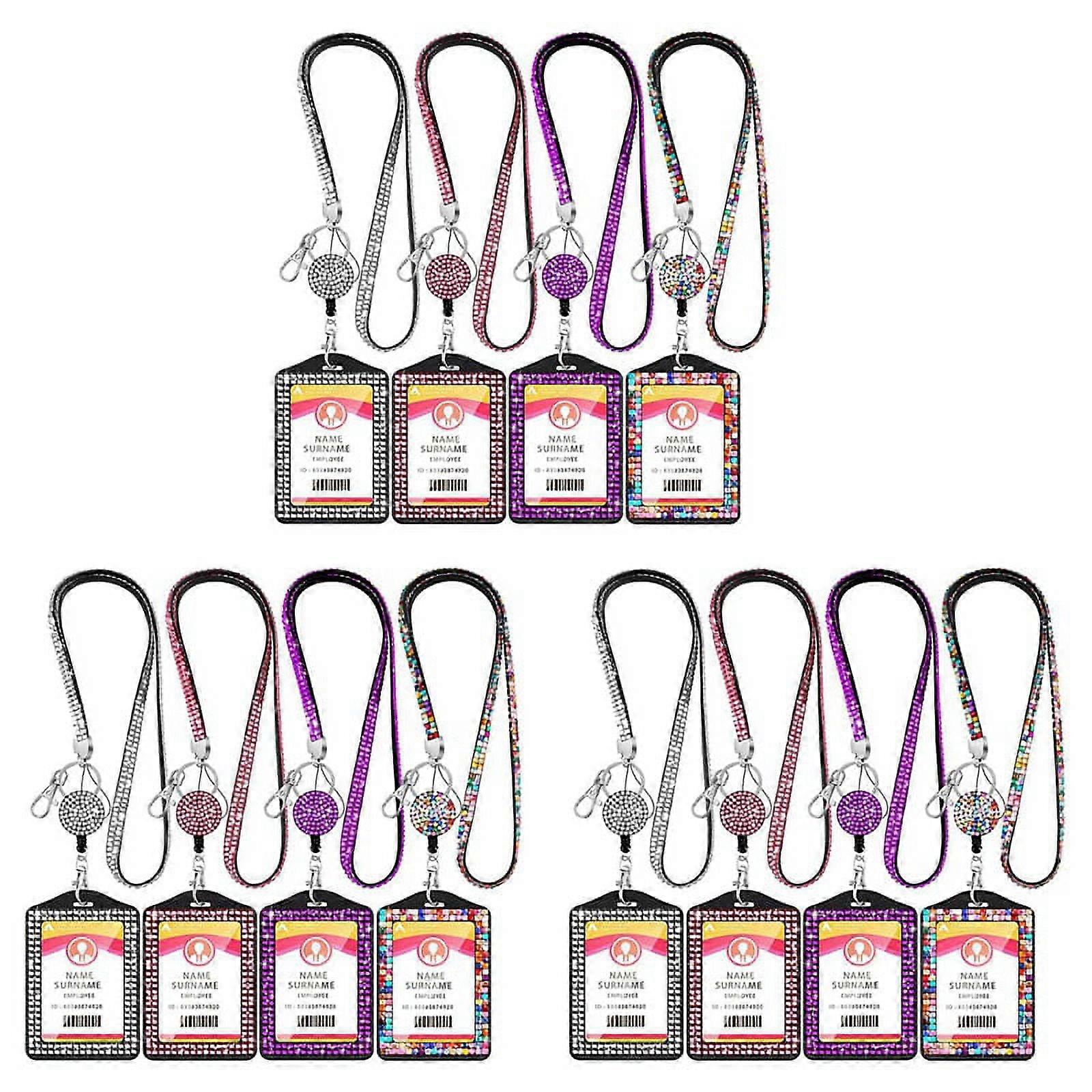 12 Sets Rhinestone Lanyard ID Card Holder Crystal Retractable Badge Reel Rhinestone Neck Lanyard Card Holder