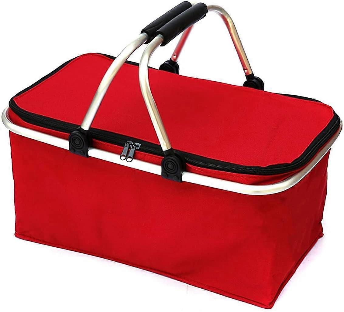 Tmtop 30L Folding Picnic Camping Basket Insulated Shopping Cooler Home Storage Basket - Red