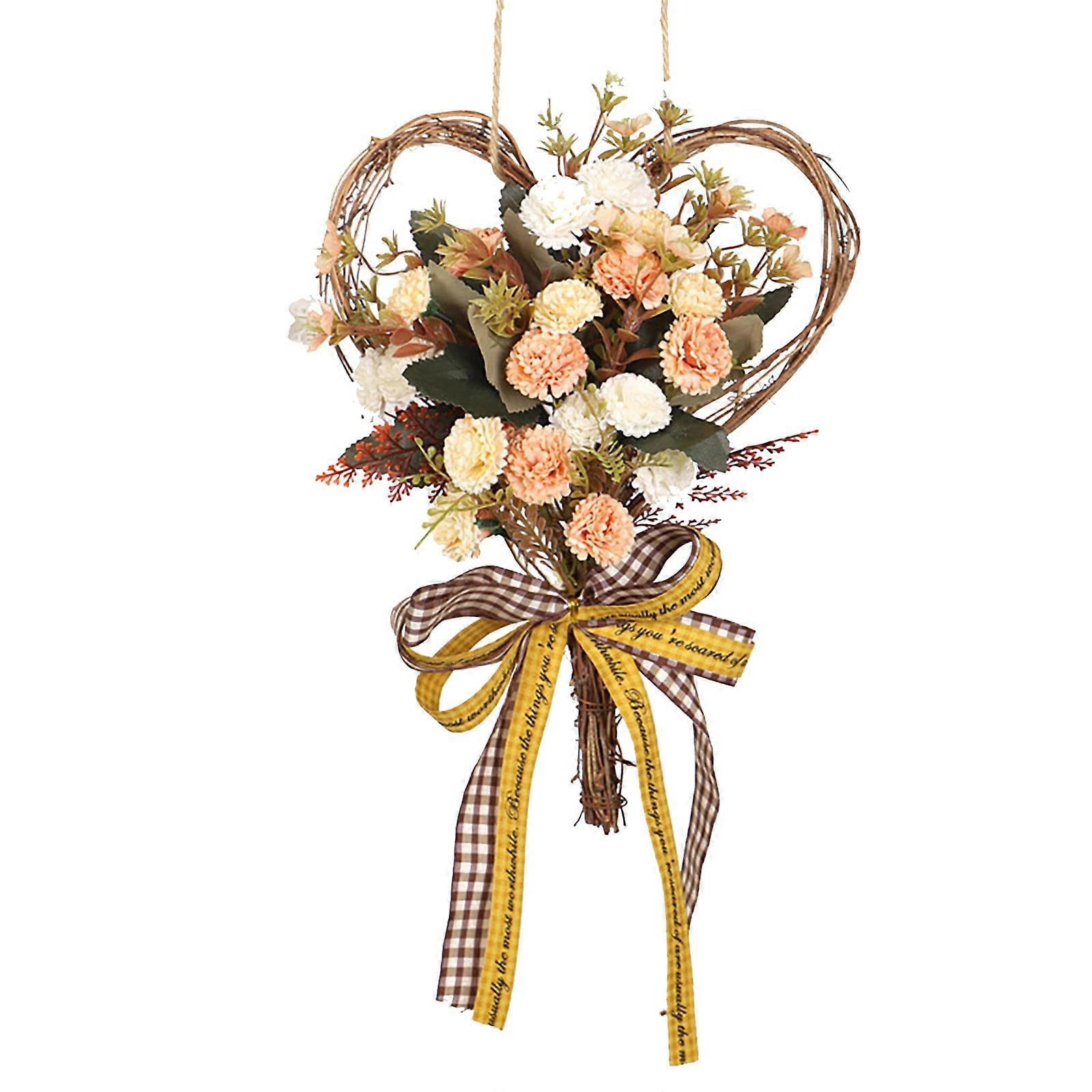 XIUH Home Decoration Simulation Carnation Heart Wall Hanging Bow Garland Mother's Day Gifts (C)