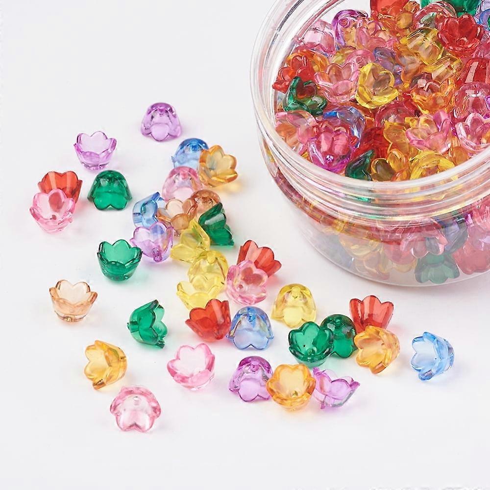 1Box Transparent Acrylic Bead Caps Tulip Flower Lily of the Valley Dyed Mixed Color 10x6.5~7mm Hole: 1.5mm about 235~240pcs/box