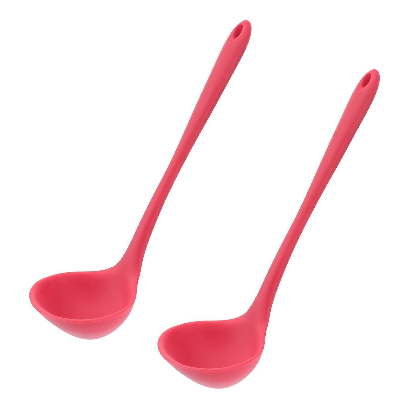 2 Pcs Silicone Soup Ladle Tablespoons Deep Serving Spoon Kitchen Utensils Spoon Food Serving Spoon Metal Red Child