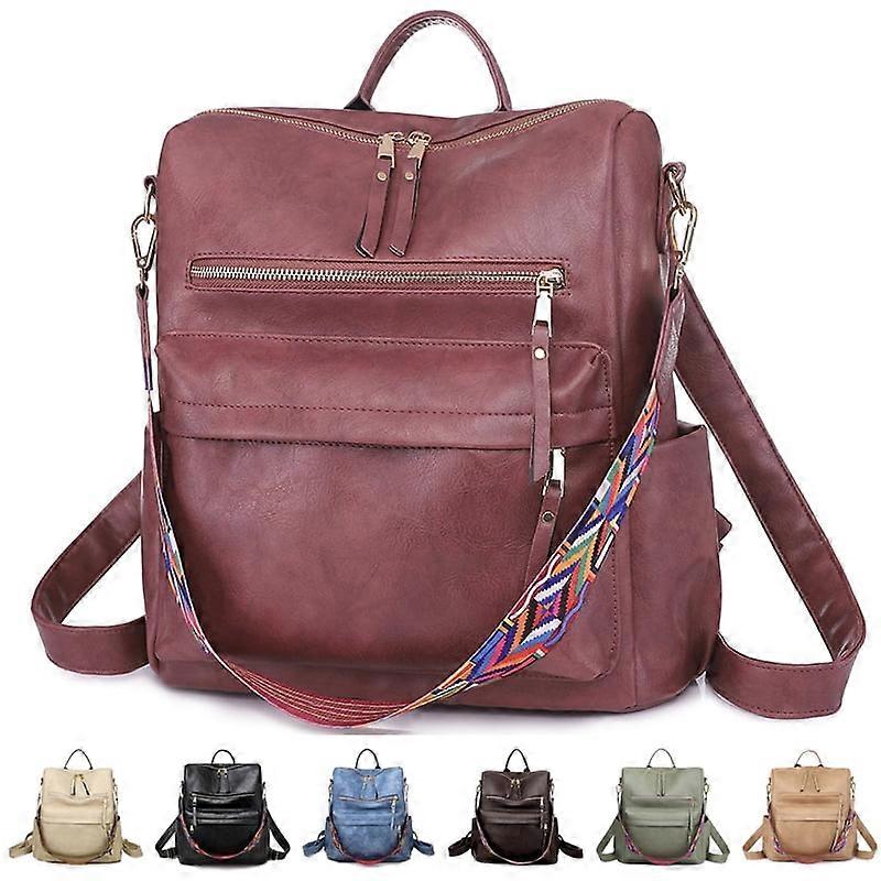 Women Backpack Retro Leather Travel Bag Casual Travel Bag omen Backpack,Wine Red