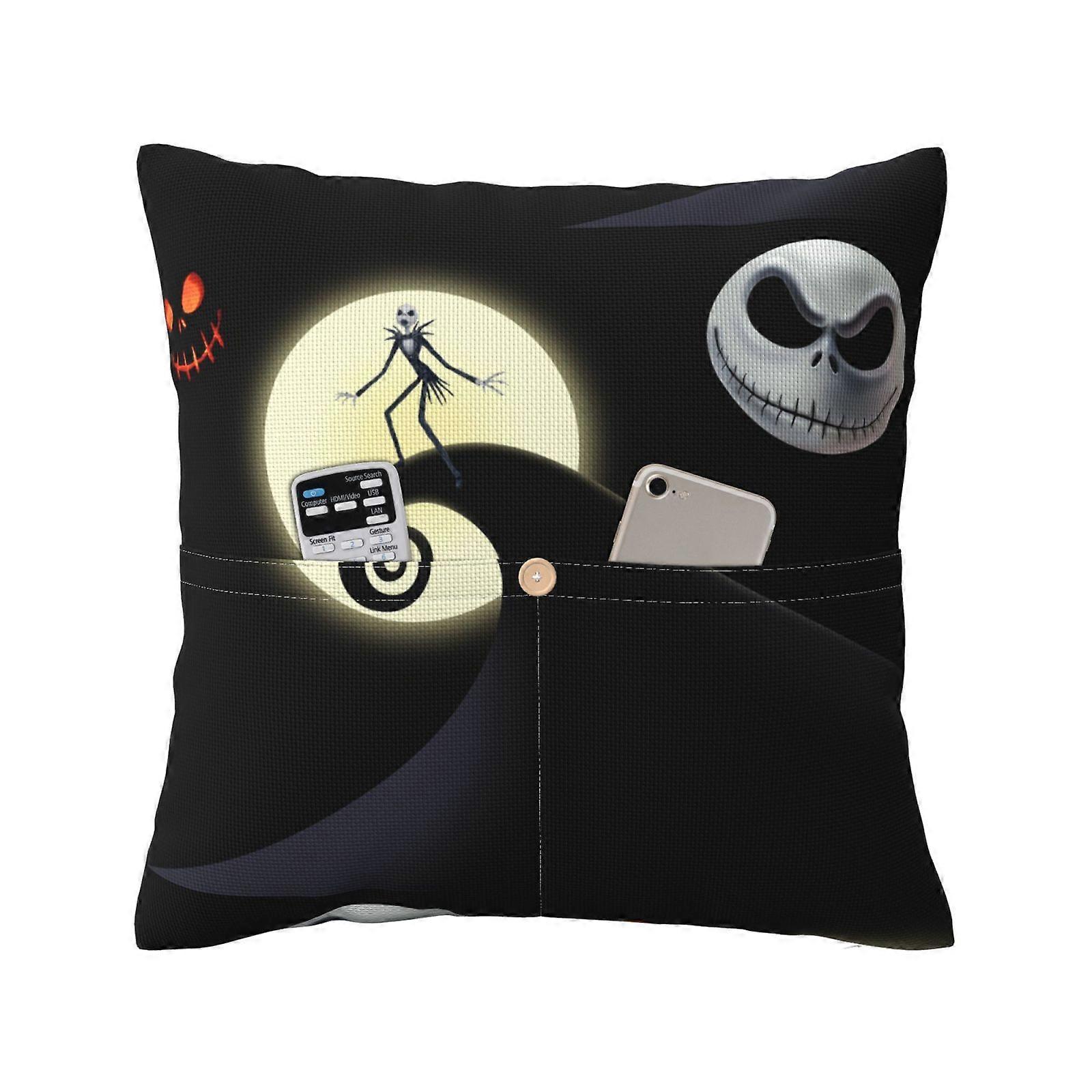 Nightmare Before Christmas Linen Burlap Pillow Cover 16x16 18x18 20x20 Inch Black, Compatible with Sofa Car Couch Decor, No Insert