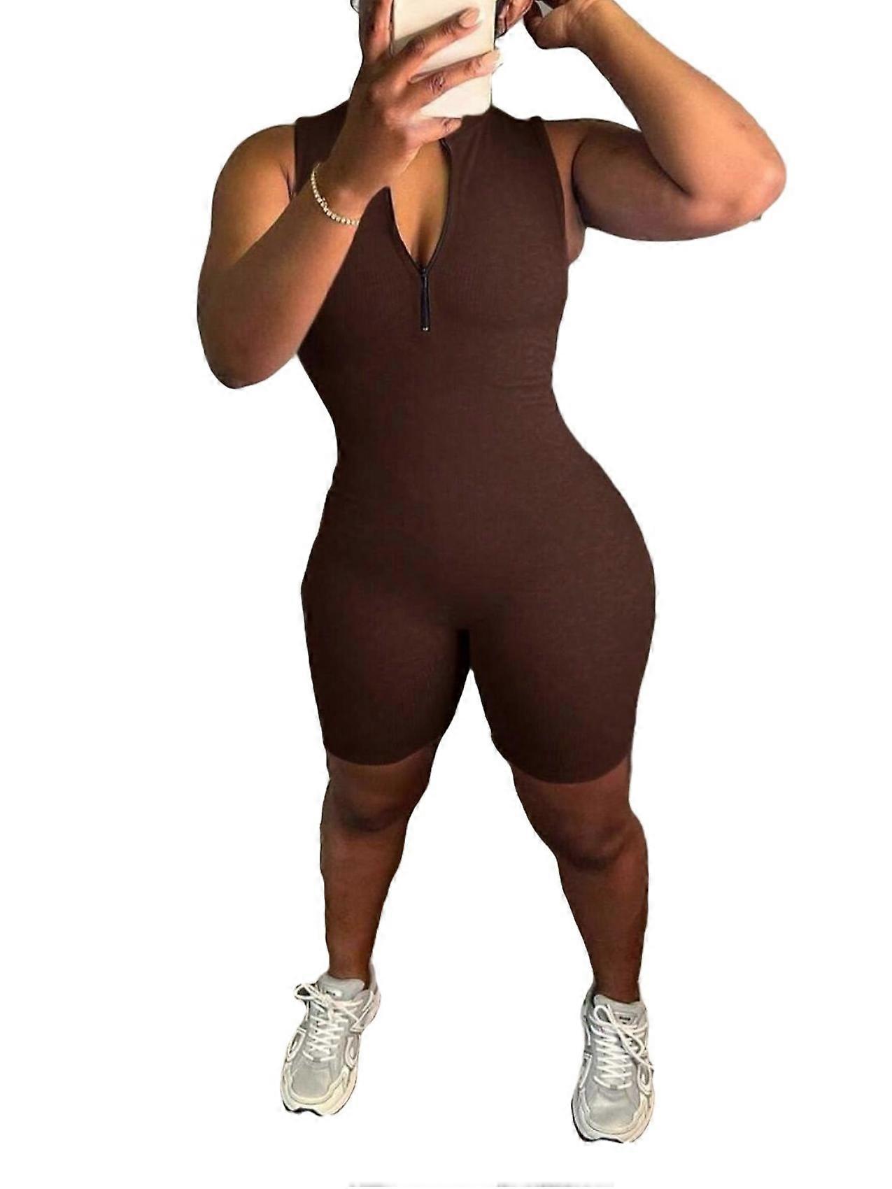 Women Unitards Coffee Brown Colour Plain Asymmetrical Neck Sleeveless Casual