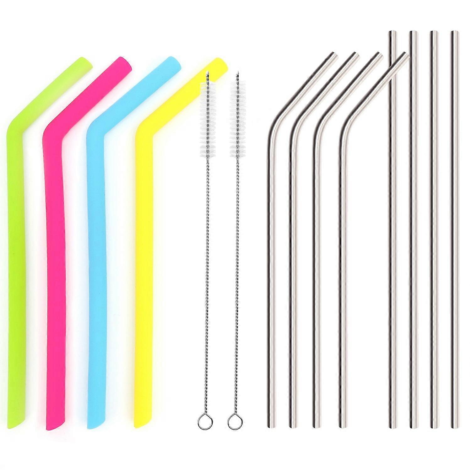 Reusable Straws Set of 8: 8.5" Stainless Steel & 4 Silicone, 2 Brushes, Compatible with Tumblers, YETI, RTIC, Ozark, Fits 20 oz
