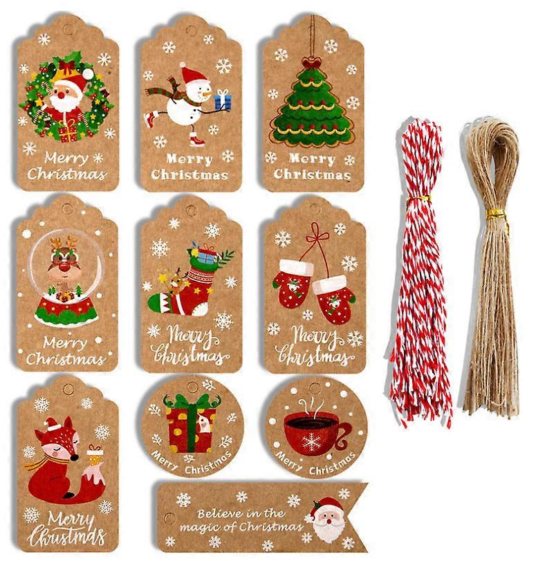 100Pcs New Christmas Kraft Paper Gift Tags Scallop Label Luggage Blank + Strings