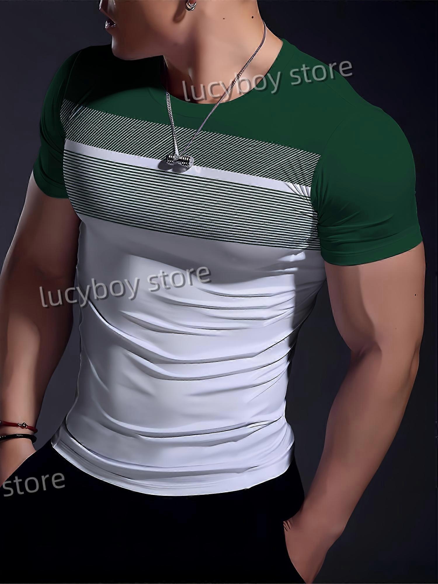 Gym Muscle Training Men T Shirt Color block Sports Cycling Short Sleeve Tees Quick Drying Running Men Oversized Clothing Tops