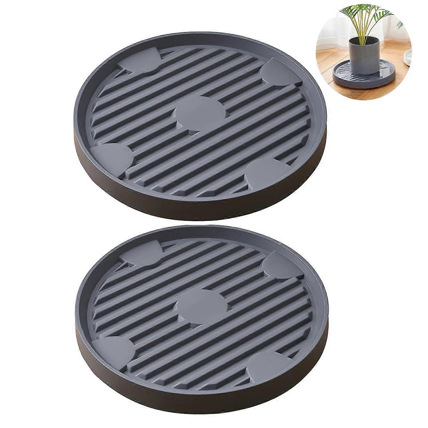 Wheeled Plant Cart, Heavy Duty, 22CM Round Flower Pot Cart, with Braked Wheels, Removable Flower Pot Rack (2 Pieces, Gray)