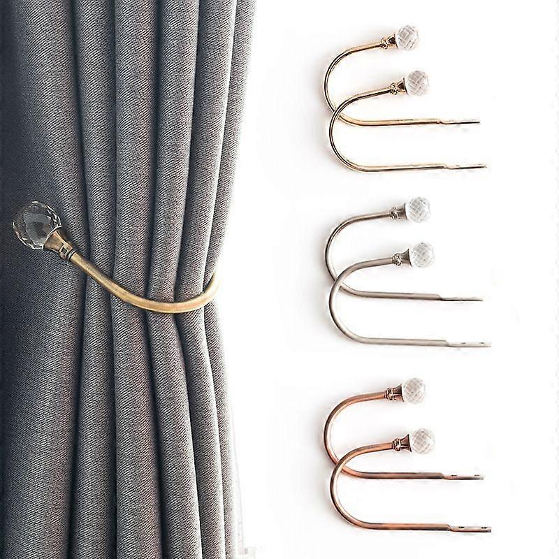 2-pack acrylic crystal ball curtain tie. Wall-mounted U-shaped metal curtain tie (small, gold)