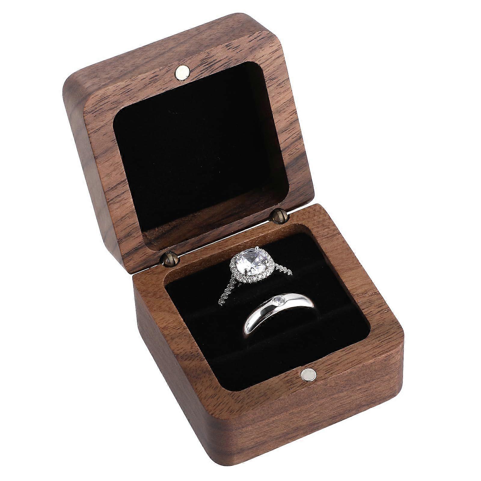 Wooden Ring Box, Small Engagement Ring Box with 2 Slots, Square Wedding Ring Box, Vintage Ring Box Double Ring Box for Proposal Ceremony (Double Slot