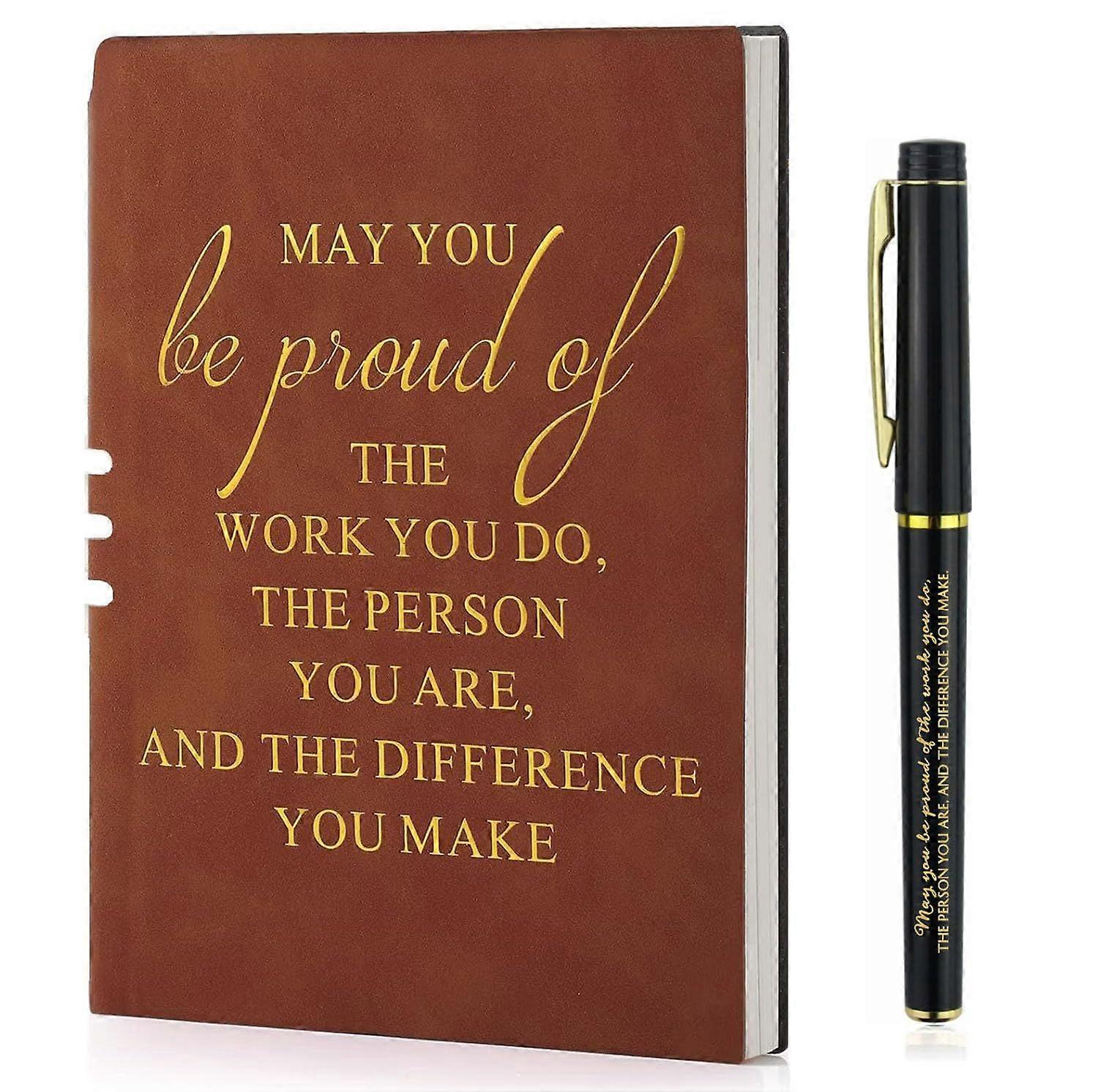 Thank you gift leather notebook A5, farewell gift, teacher gift, ballpoint pen notebook for employees, colleagues (brown) (pen without text)