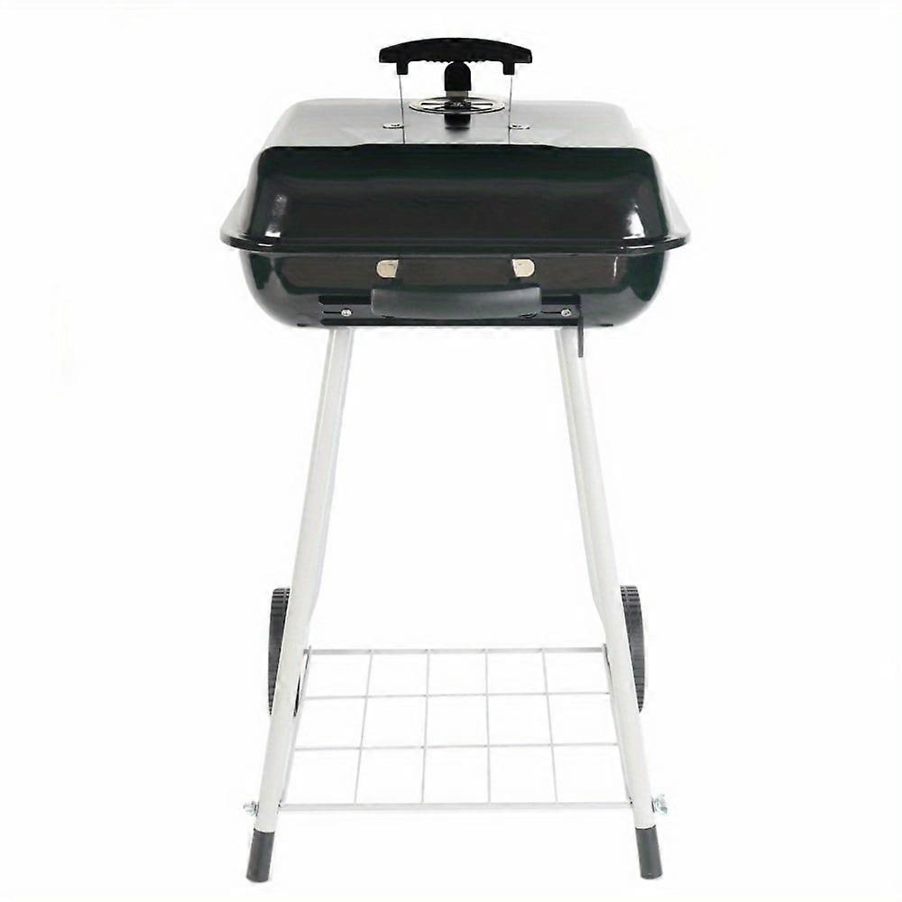 17.5" Square Steel Charcoal Grill with Wheels, Portable Design, Durable Black Finish for Backyard BBQs & Outdoor Cooking