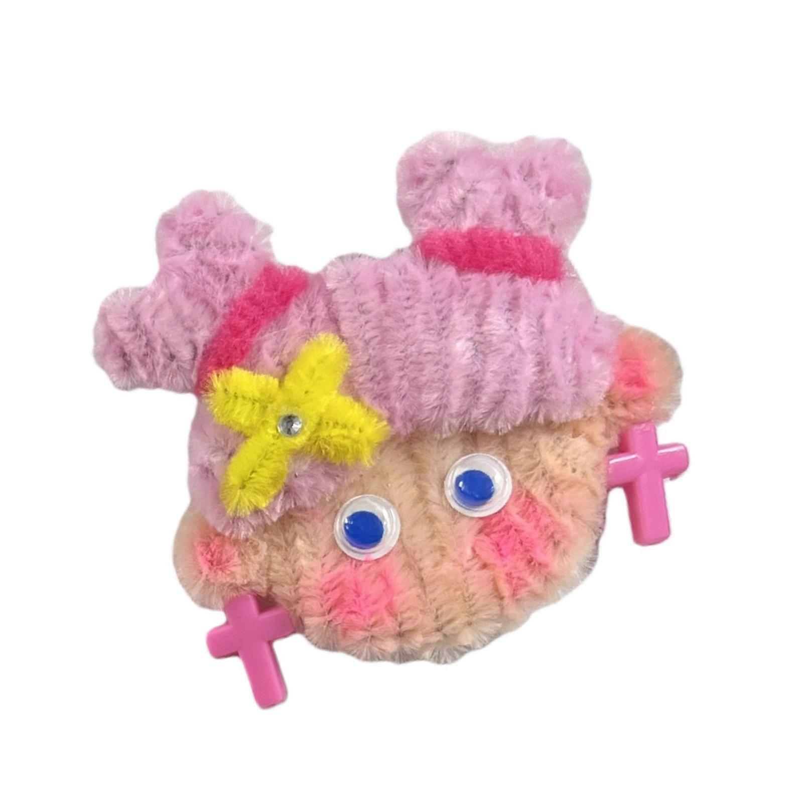 Cute Twist Tie Hair Clip For Girls Kids Soft Plush Barrettes With Cartoon Design Safe Headwear For Daily Styling Pink
