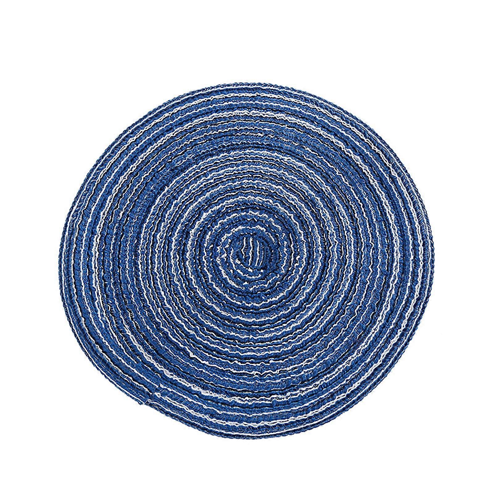 Round Cotton Yarn Placemat, Heat Insulation Woven Table Mat Compatible with Western Style, Blue