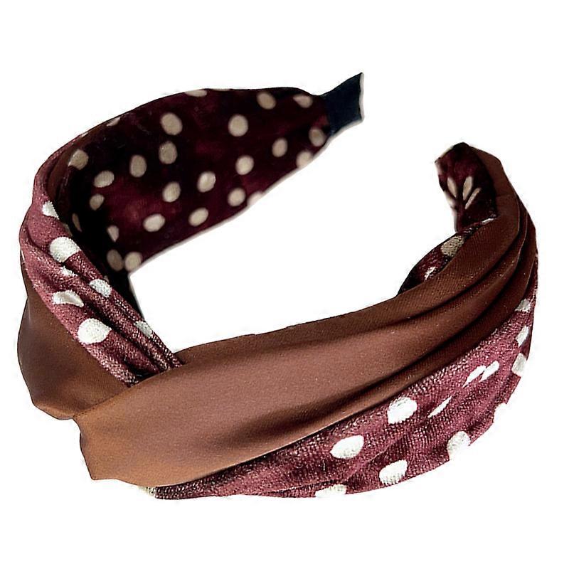 Velvets Hairband Wide Band Dots Design Antiskid Hair Accessory For Women And Girls Brick red