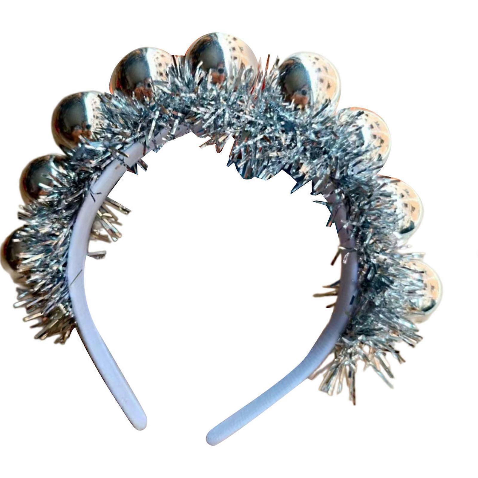 Holiday Hair Clip With Balls Accent, Christmas Hair Hoop Plastic Hair Ornament Hairband For Day Wear Celebration Silver