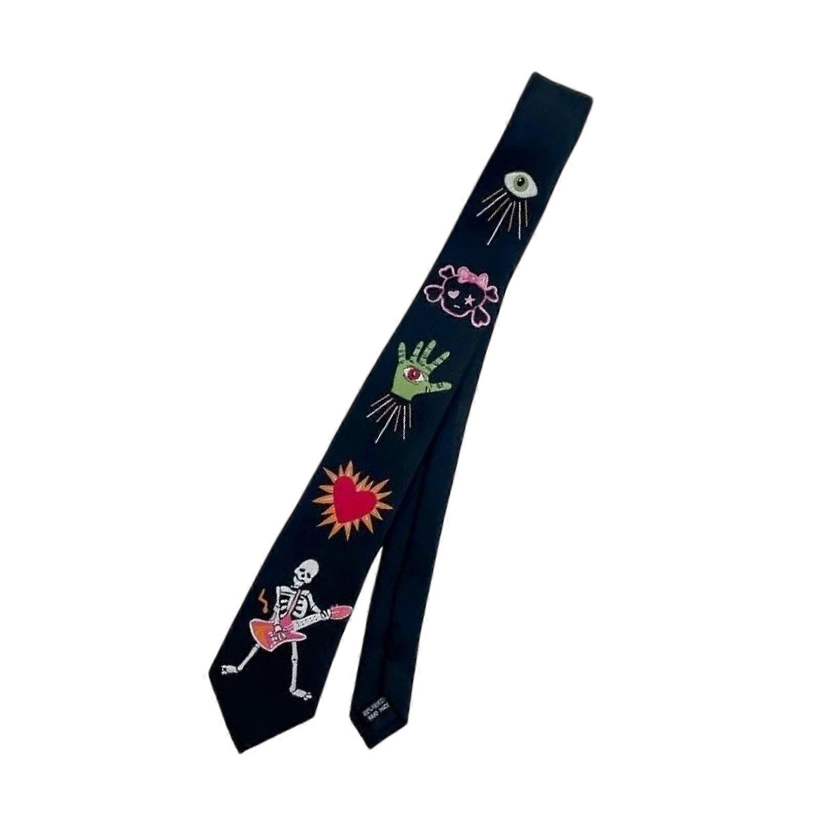 Unique Themed Black Embroidered Necktie From Wool For Comfortable Styles Black