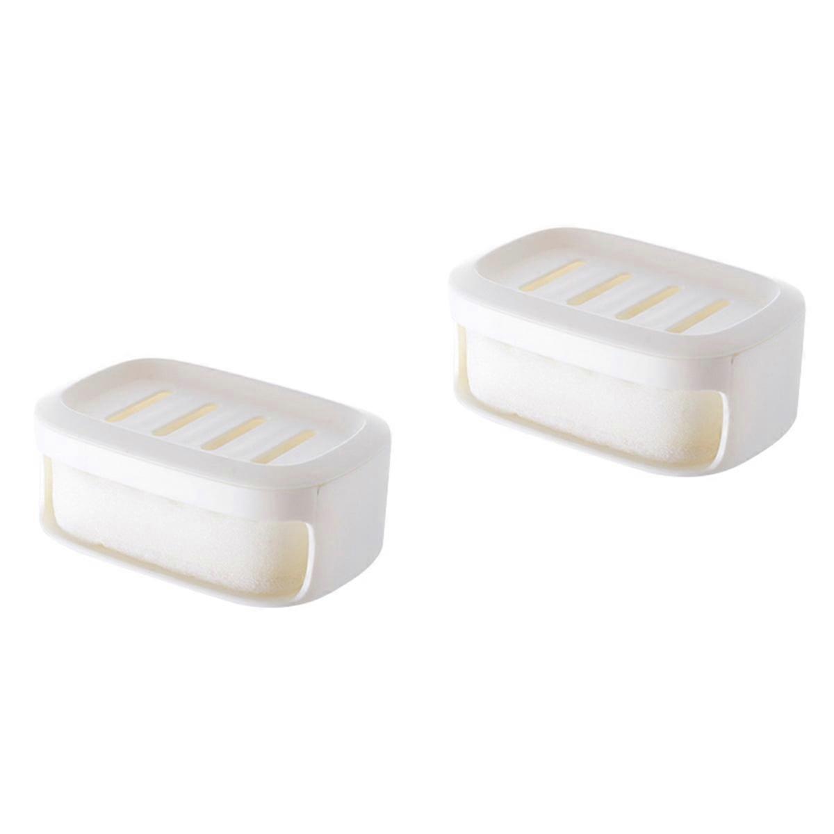 2pcs Seamless Double Layer Soap Box, Waterproof & Slotted Drainer, Compatible with Bathroom/Shower/Home/Outdoor/Travel (White)