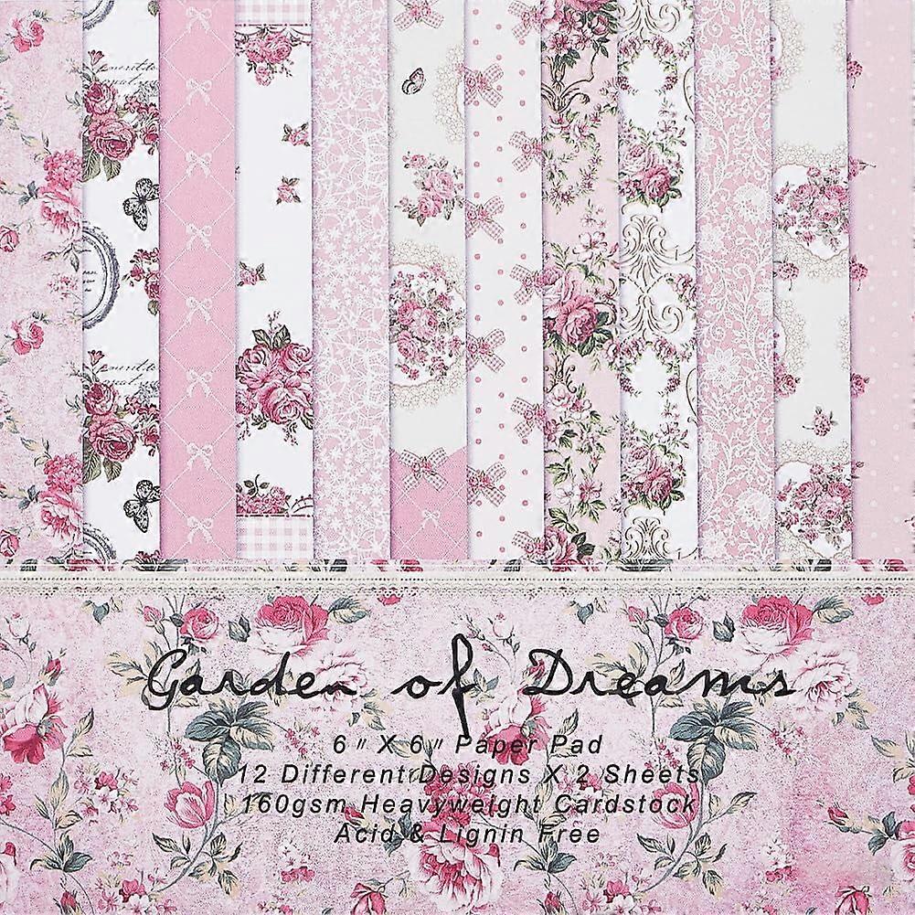 24 Sheets Vintage Floral Scrapbook Paper Pad, 12 Styles, 6x6 inch, Single-Side Cardstock for DIY Greeting Cards, Journal Decor, Compatible with Art