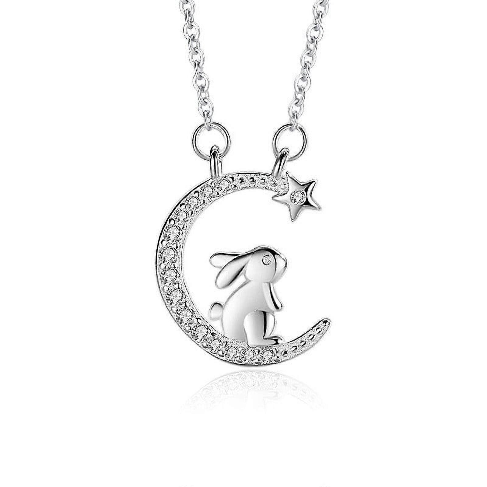 Valentines Day Gifts Savings Deals! WJSXC Cute Rabbit Necklace Animals Star Collar Chain Design Sense Star Rabbit Necklace Silver