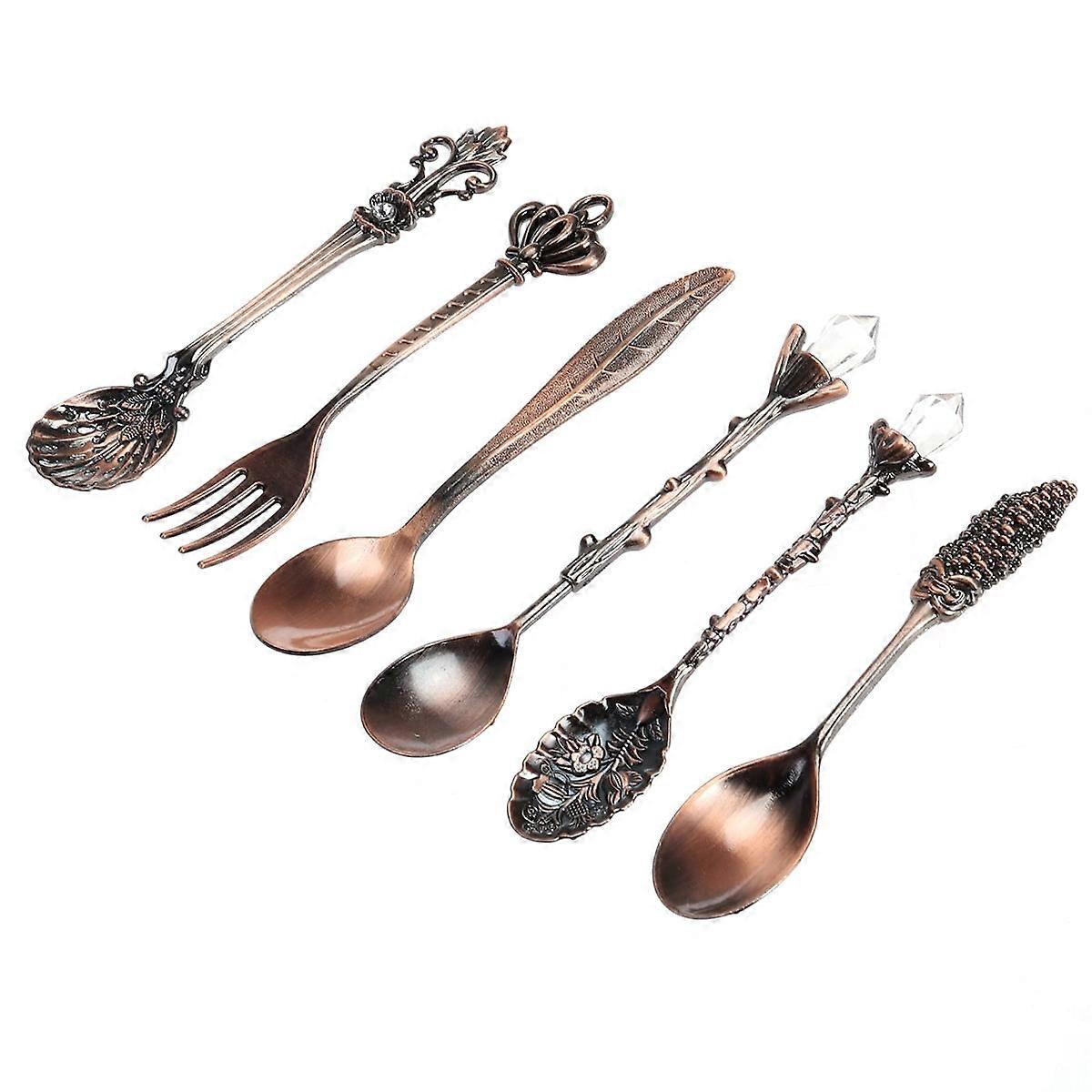 Coffee Spoons 6 Pcs Xmas Gifts Vintage Tableware Dessert Forks Metal