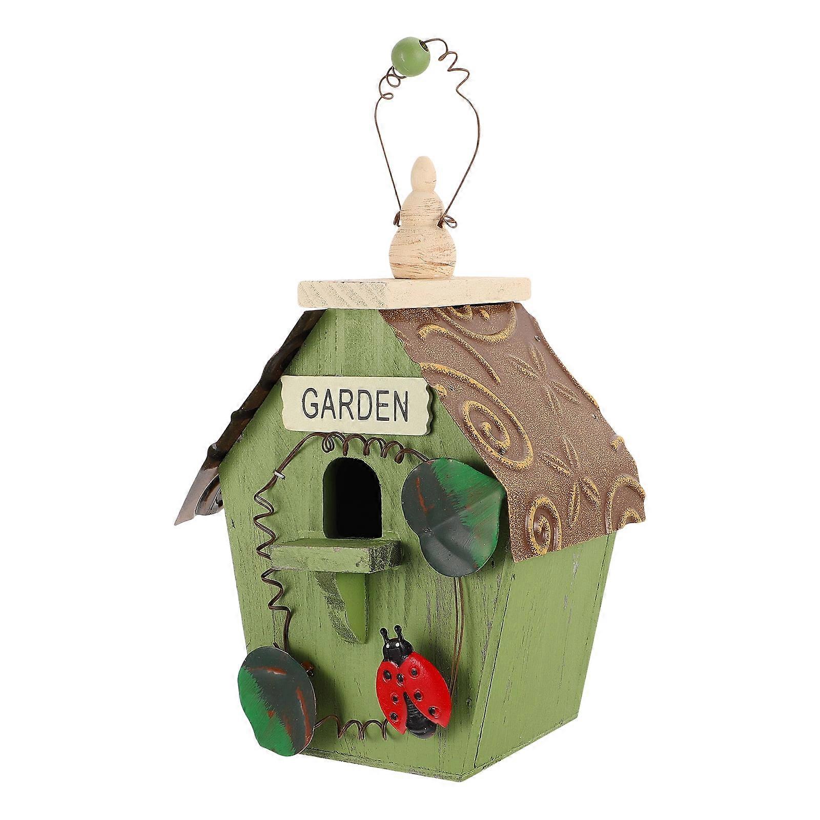 1pc Courtyard Hanging Bird House Handmade Bird Nest Wood Bird Shelter (Green)